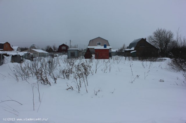 Участок 6 соток земли, ровный, прямоугольной формы. Подъезд круглогодичный, возможно добираться общественным транспортом из г. Балабаново. Общество обжитое, на въезде стоит шлагбаум, общество охраняется.